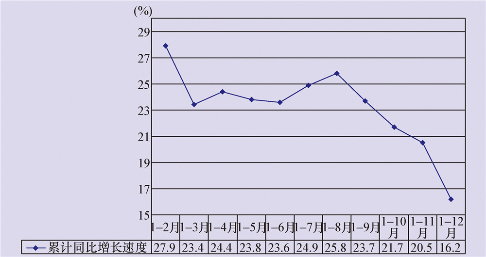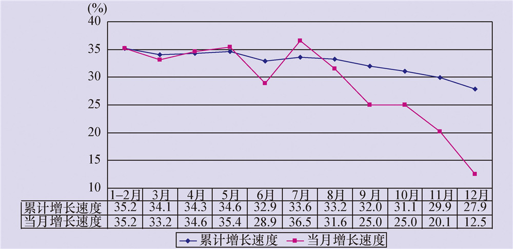 分季度看,一季度、上半年、前三季度和全年分别增长34.1%、32.9%、32.0%和27.9%,也呈逐季回落的态势。