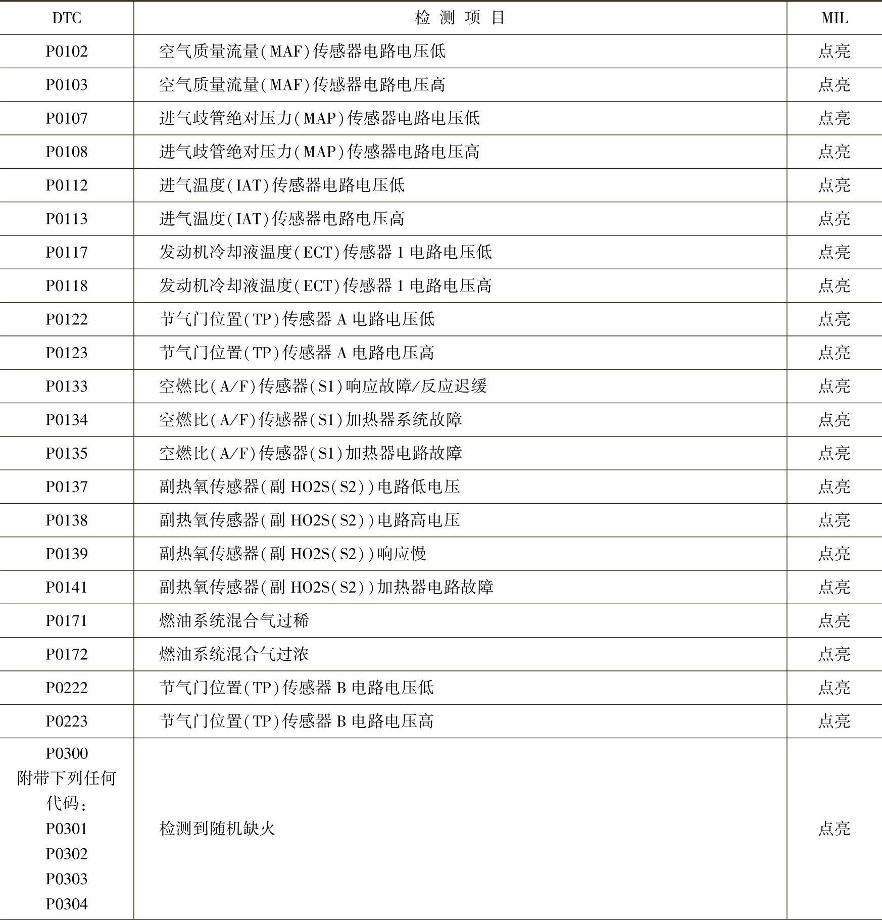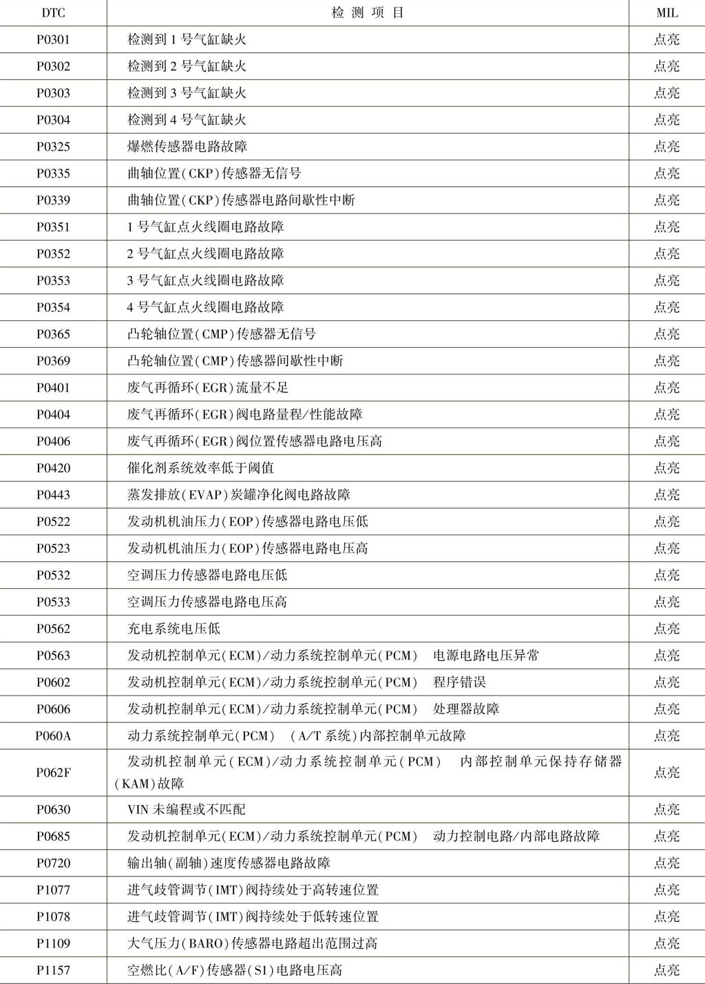 表1-2中列出的是本田发动机部分故障诊断码(PGM-FI系统)。