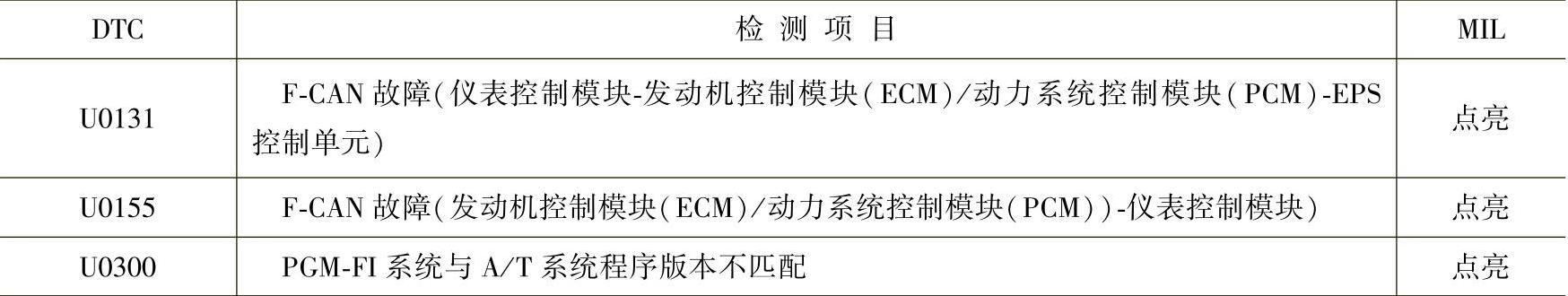 ①在HDS中选择PGM-FI系统时,显示上述DTC。某些自动变速器DTC会亮起MIL。如果MIL亮起,但PGM-FI系统中未显示DTC,则应选择A/T系统,并检查自动变速器DTC。