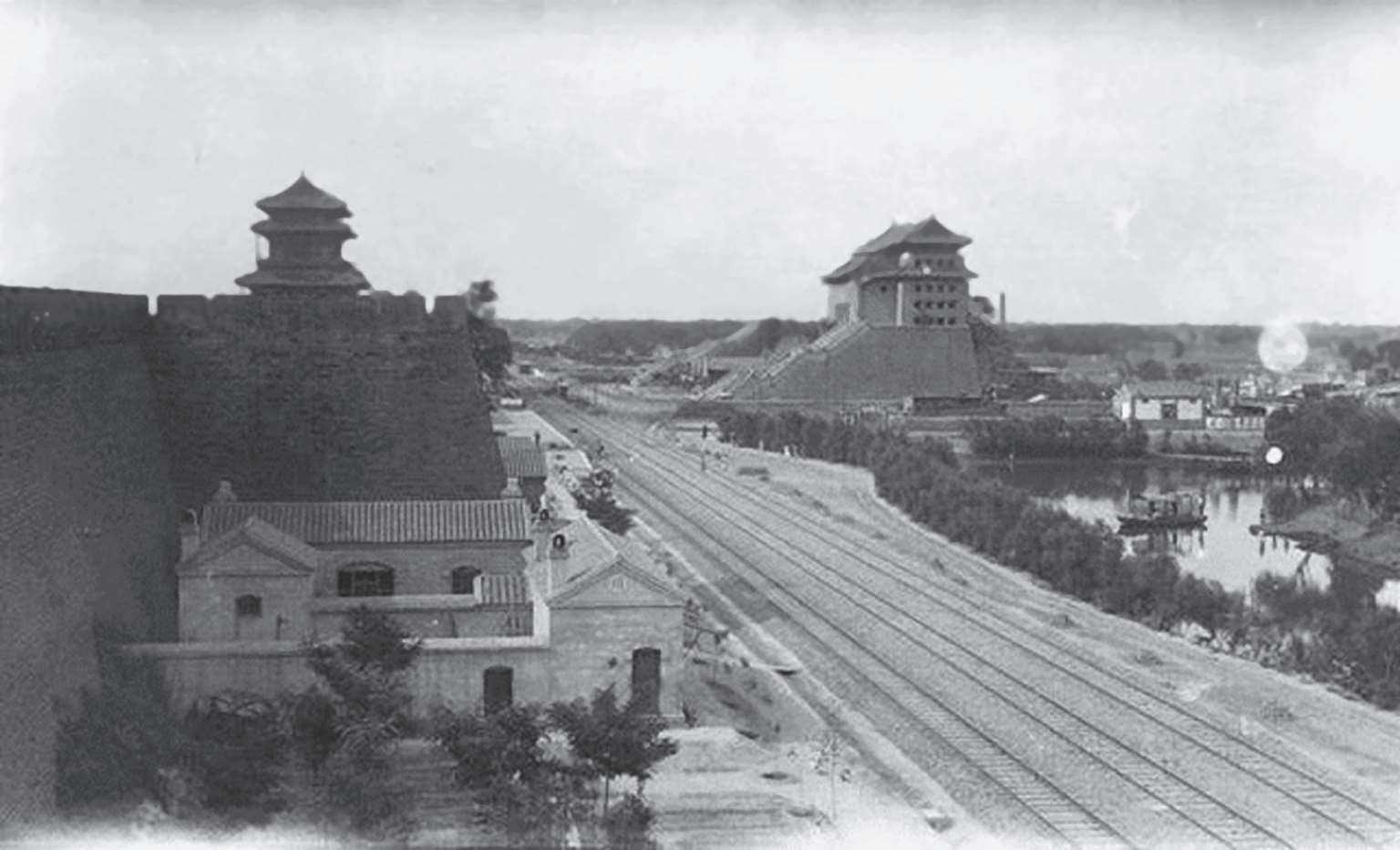 民国时期老北京城的铁路线与城门远景