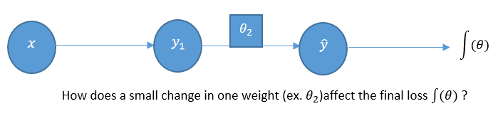 Let's reconsider our simple perceptron model to see how we can backpropagate its errors by computing the gradient of our loss function, J(θ), iteratively: