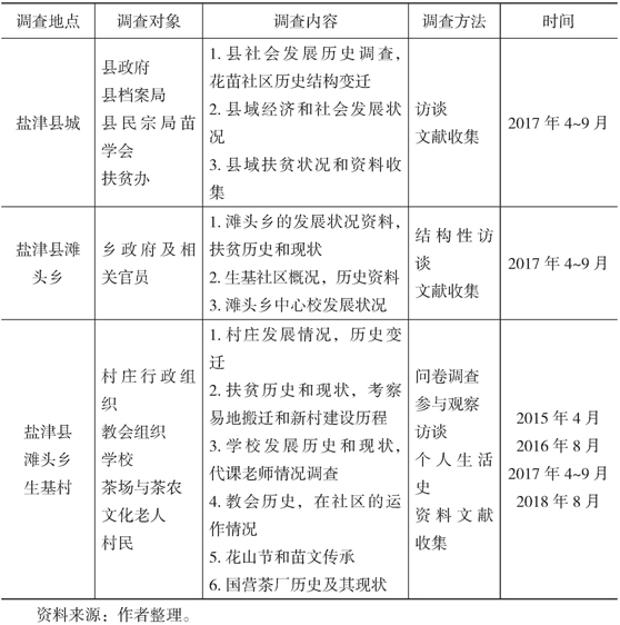 2017年4~9月,调查组三次前往盐津县进行调查,调查县域、乡镇和基层社区历史和发展情况。访问当地苗族干部、乡村教师、村民等,参与当地社会和文化活动,进行观察。