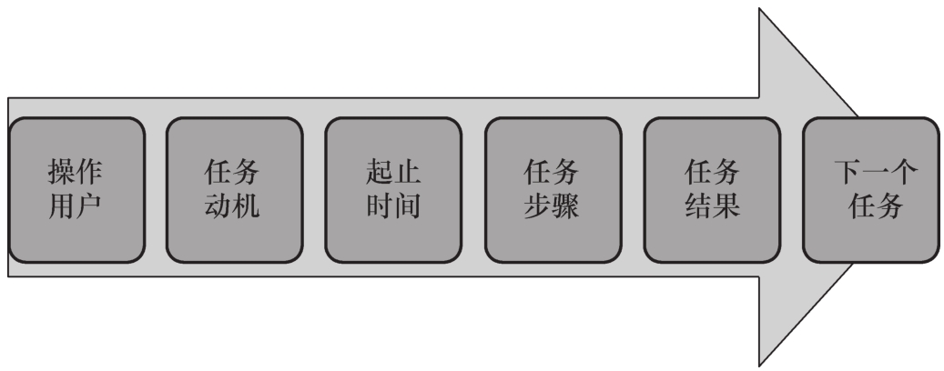 交互任务分析包括人机交互过程中操作用户、任务动机、起止时间、任务步骤、任务结果以及下一个任务等,如图3-6所示。