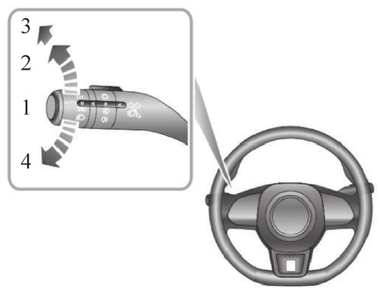 对于有盲操作需求的物理界面,应该使界面易于触及,且不易误触其他界面。以转向灯和远近光操控为例,在驾驶过程中需要进行盲操作,如图3-11所示,较长的组合开关拨杆相对容易定位,且周围无其他按键干扰造成误触,同时四个切换方向也利于盲操作,1、2上下拨动可以实现转向切换,3、4前后拨动可以实现远近光切换。
