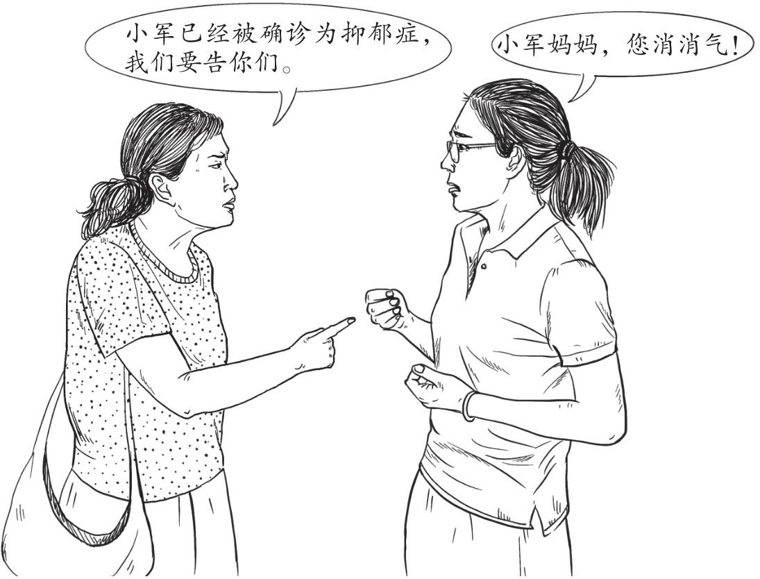 本案中,小明在大庭广众之下侮辱小军,侵害了小军的人格尊严,并导致小军患上了抑郁症的严重结果,小明应当对这一结果负责。但由于小明还是未成年人,因此应当由其监护人(一般为其父母)来承担相应的赔偿责任。除此之外,还应由小明的监护人带他向小军赔礼道歉。