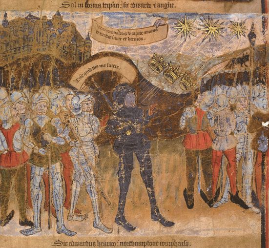 在1461年2月的莫蒂默十字战役中,马奇伯爵爱德华(后来的爱德华四世)在天空中出现三轮旭日的异象的鼓舞下,指挥军队取得大胜,杀死了欧文·都铎。