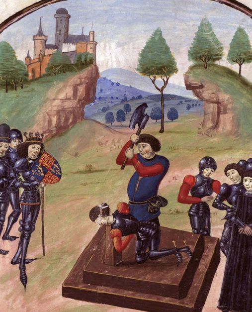 萨默塞特公爵埃德蒙在蒂克斯伯里战役之后被斩首,爱德华四世在一旁漠然地观看。