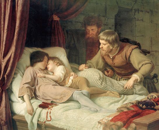 这幅创作于1835年的画作展现了“塔楼内的王子”爱德华五世和约克公爵理查被谋杀的场景。