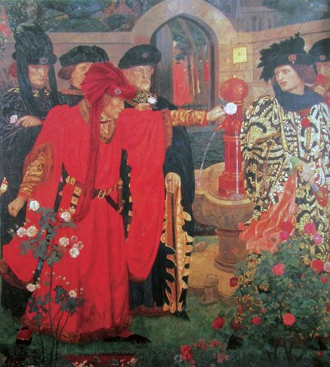 莎士比亚《亨利六世》中著名的“玫瑰园”场景,由Henry Arthur Payne于1908年创作。