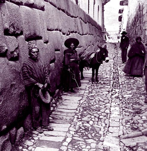 1906年秘鲁库斯科的街道场景。此时距离海勒姆·宾厄姆首次前往秘鲁还有三年的时间。注意图中的那些巨型石块,它们都是可以追溯到印加时代的。(LIBRARY OF CONGRESS)