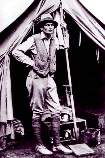 三十七岁的海勒姆·宾厄姆于1912年第二次前往马丘比丘探险期间的照片。(NATIONAL GEOGRAPHIC,1913)