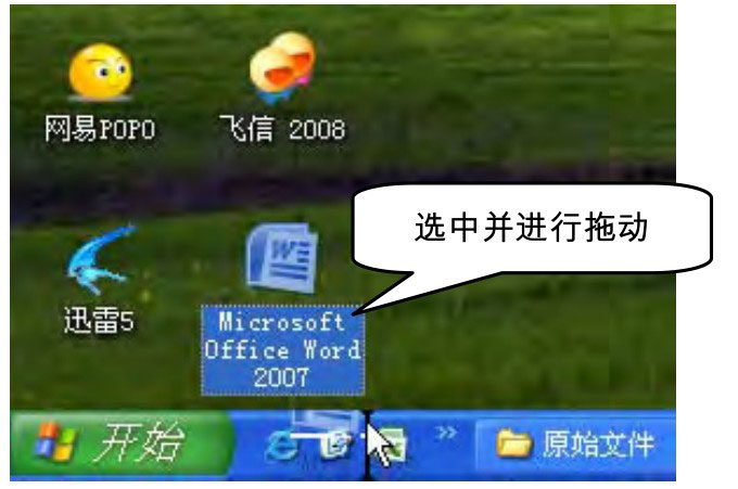 Step1 添加程序至快速启动栏。在桌面中选中需要添加到快速启动栏的软件图标,并按下鼠标左键拖曳至快速启动栏中,如图1-71所示。