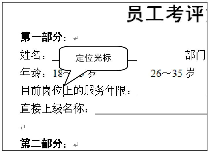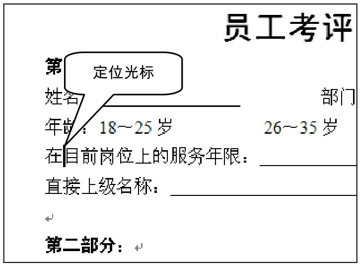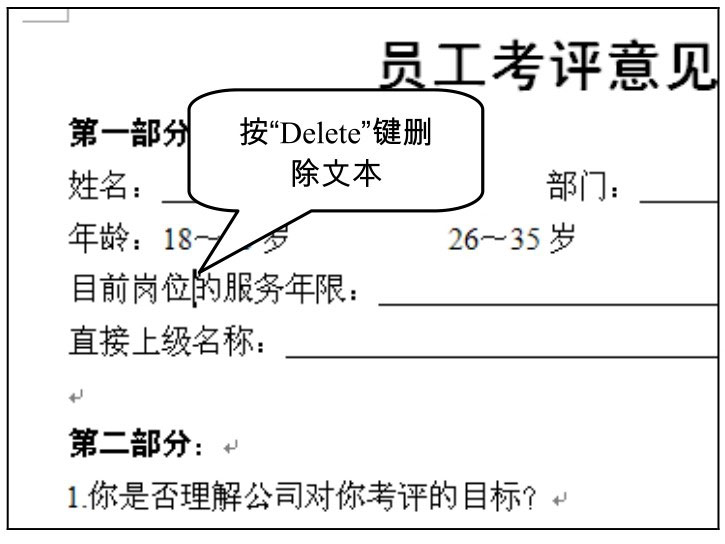 Step1 定位光标在删除文字之后。打开实例文件\第2章\原始文件\员工考评意见调查.docx文件,将光标定位在第4行内容的“在”文本之后,如图2-28所示。