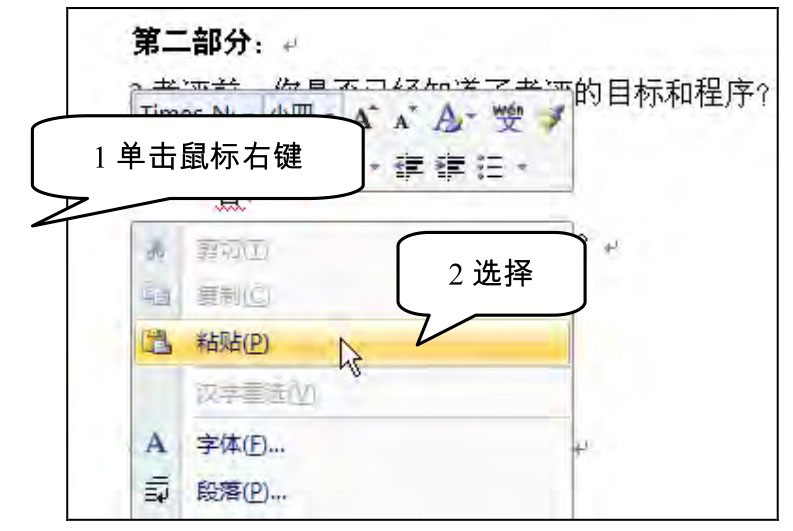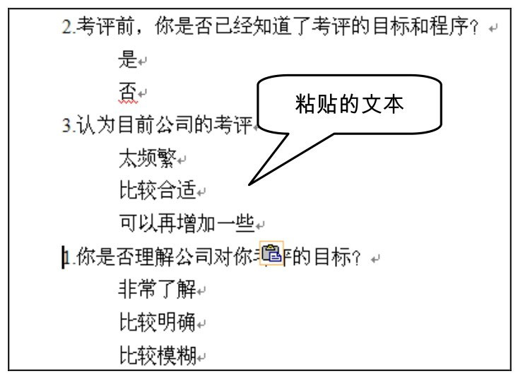 Step2 粘贴文本。将光标定位在需要放置复制的内容的位置,在此将光标定位在第三个问题编号“3”之前,再单击“开始”选项卡下的“剪贴板”组中的“粘贴”按钮,如图2-33所示。