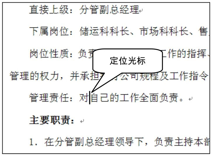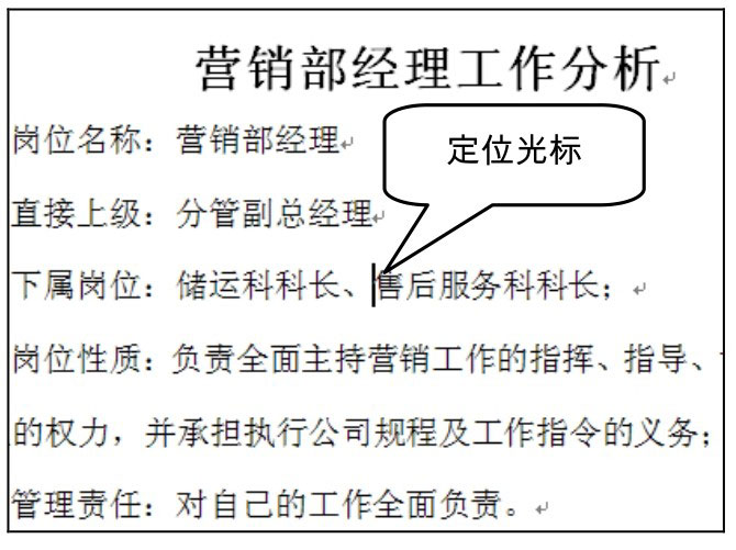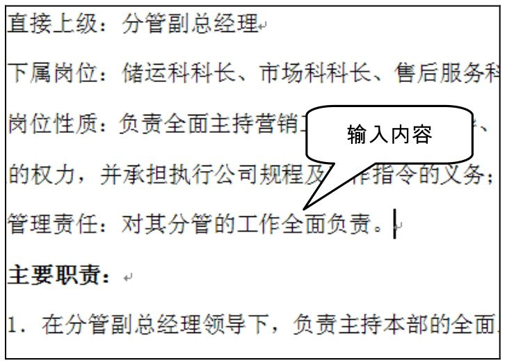 Step3 输入内容。在目标位置定位光标之后直接输入所需要的内容即可,比如在此输入“市场科科长、”文本,如图2-43所示。