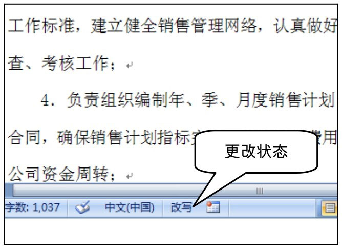 单击状态栏中的“插入”按钮即可进入“改写”状态,单击“改写”按钮即可还原为“插入”状态;还可以按键盘中的“Insert”键在“改写”和“插入”编写状态中进行切换。