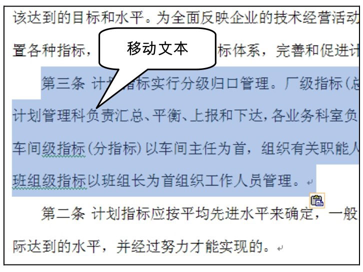 Step1 移动文本。打开实例文件\第2章\原始文件\指标管理.docx文件,将第5个段落的文本移动至第4个段落位置处,将第3个段落文本移至第2个段落位置处,效果如图2-47所示。