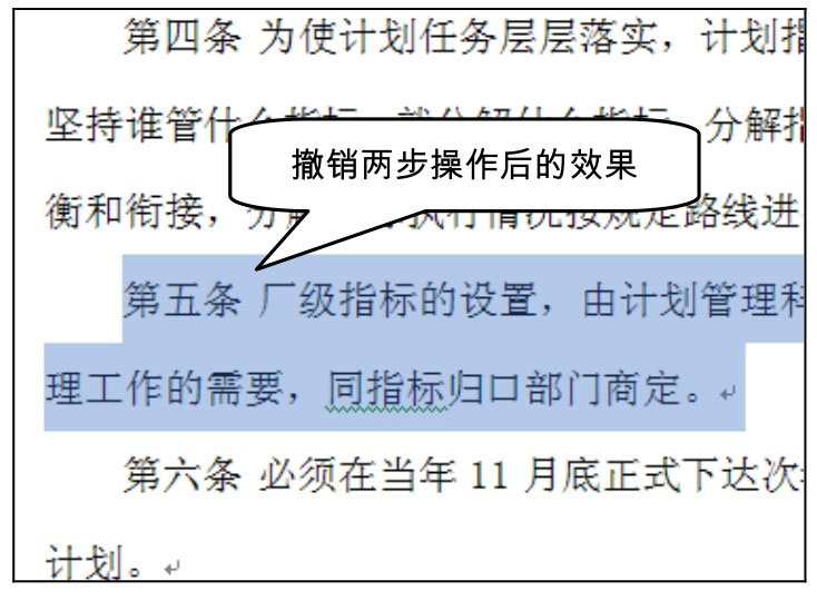 Step4 撤销两步操作后的效果。再次单击“撤销”按钮,此时可以看到第4个段落的文本恢复到了第5个段落的位置处显示,效果如图2-50所示。
