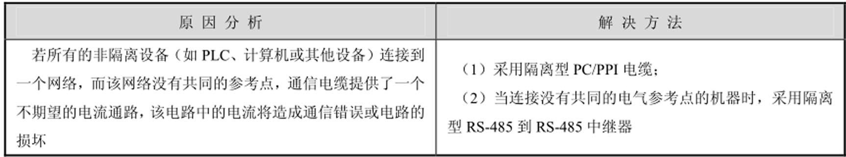 4.故障现象4:当连接一个外部设备时通信网络损坏(计算机接口、PLC的接口或PC/PPI电缆损坏)