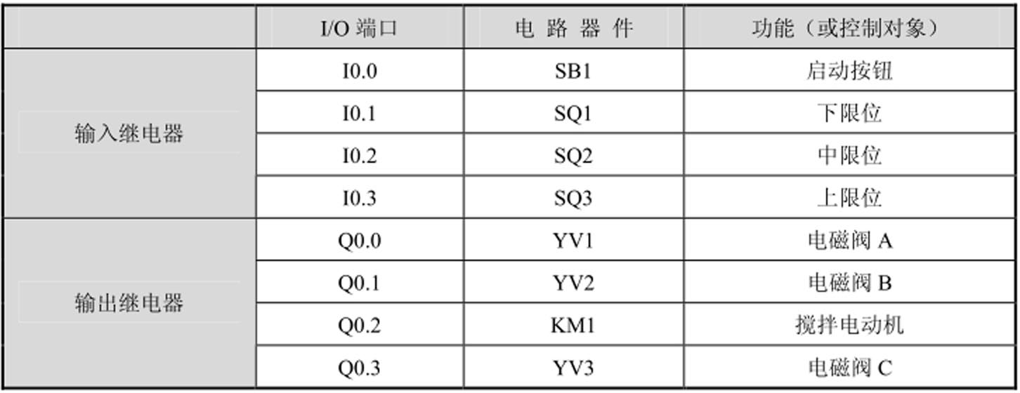 1.PLC的I/O分配及功能表(见表4-4)