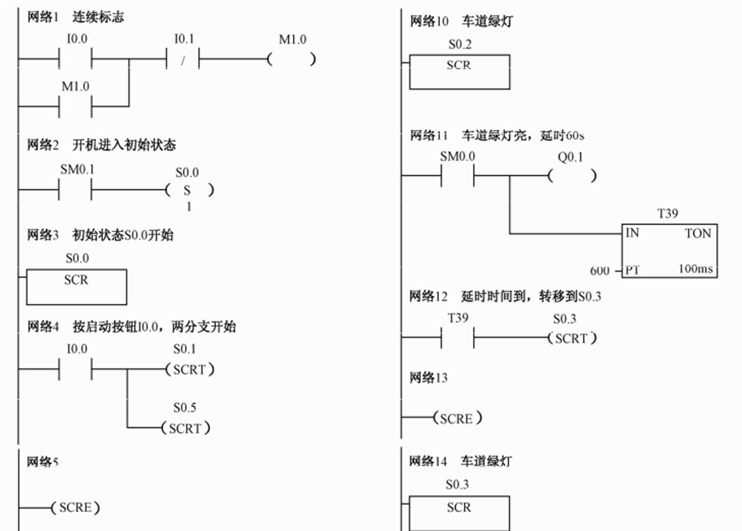 4.运输带的顺序控制梯形图程序(见图4-16)
