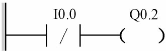 说明 非逻辑(见图1-10):当I0.0状态为0时,Q0.2有输出;当I0.0为1,Q0.2输出为0。