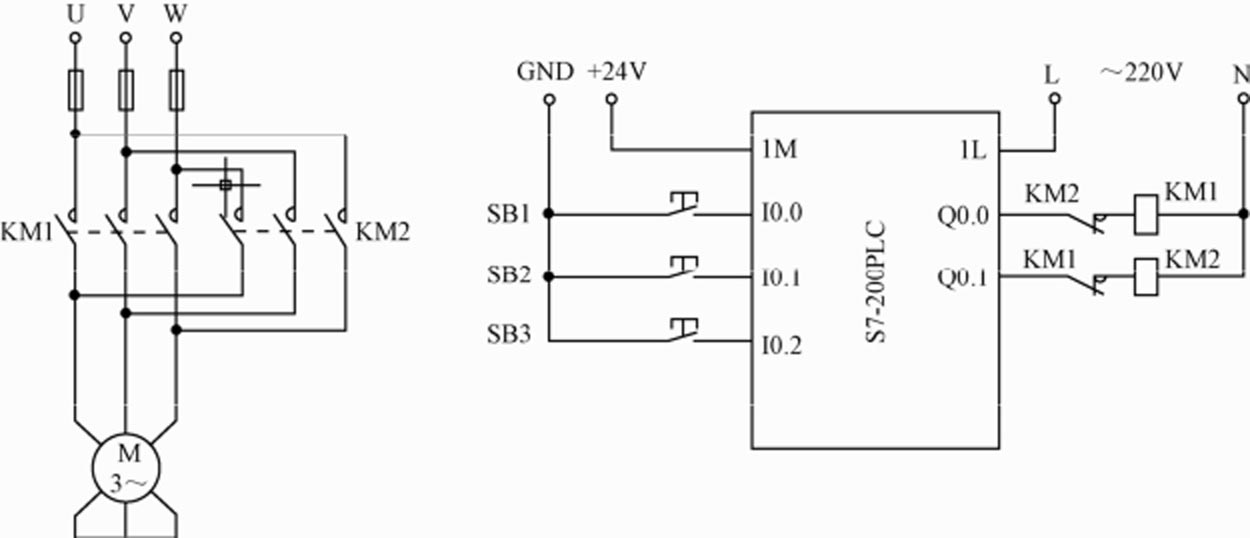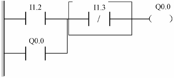 梯形图中的I1.2与I1.3是输入变量,Q0.0是输出变量,它们都是梯形图中的编程元件。I1.2与接在输入端子1.2的SB1的常开触点和输入过程映像寄存器I1.2相对应,Q0.0与接在输出端子0.0的PLC内的输出电路和输出过程映像寄存器Q0.0相对应。启动按钮SB1和停止按钮SB2的常开触点分别按在编号为1.2和1.3的输入端,接触器KM的线圈接在编号为0.0的输出端。如果热继电器FR动作(其常闭触点断开)后需要手动复位,可以将FR的常闭触点与接触器KM的线圈串联,这样可以少用一个PLC的输入点。