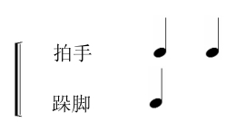 (1)用拍手和跺脚与音乐同步进行,并成为一种固定的节奏型。