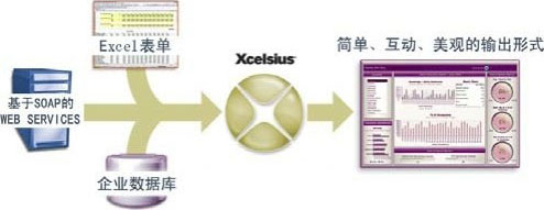 对于动态数据的获取,Xcelsius支持基于SOAP(简单对象访问协议),如XML和Web Services标准接口调用。