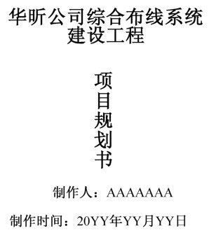 1. 项目名称:华昕公司综合布线系统建设工程。字体:“宋体”;文字横排、居中对齐;字号:“50”。