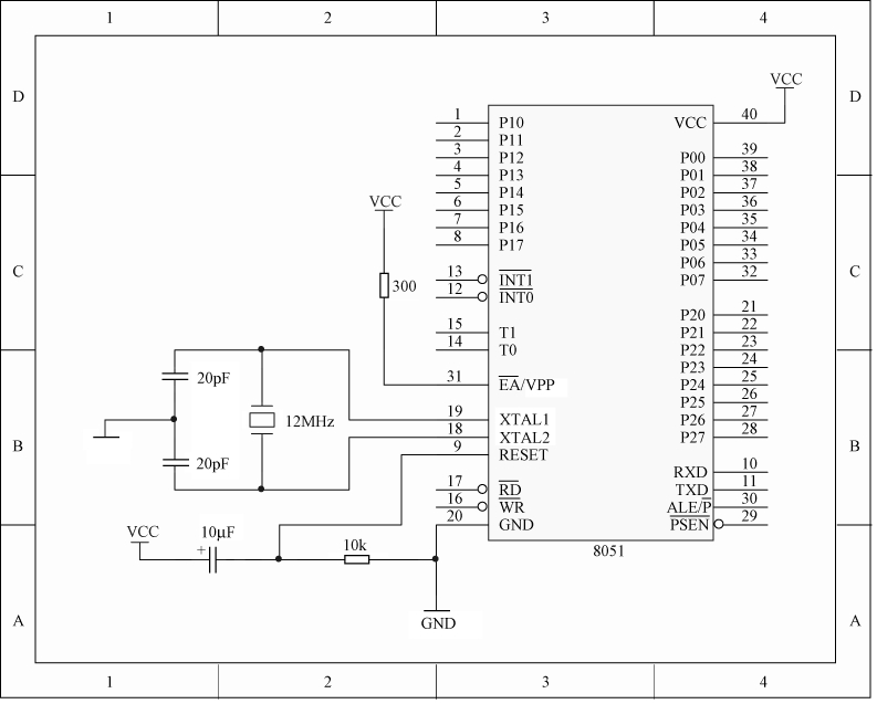 图2.8 8051单片机最小系统电路图