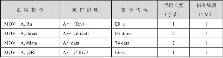 MOV指令用于寻址内部RAM和SFR,对内部RAM和SFR的操作功能如图3.8所示。
