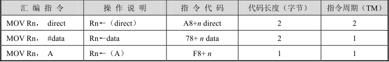 MOV R1,A ;R1←(A) MOV R3,30H ;R3←(30H) MOV R7,#80H ;R7← 80H