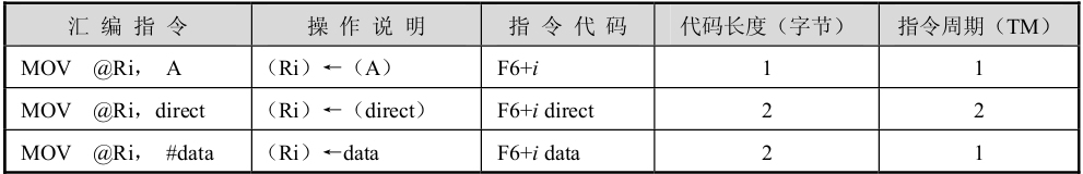该组指令的功能是将源操作数的内容送入R0或R1寄存器间接寻址所确定的内部RAM单元中。源操作数也可以为寄存器寻址、直接寻址和立即寻址方式。