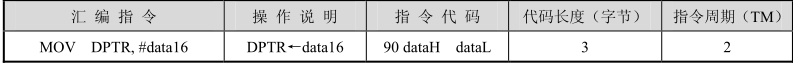 该指令是指令系统中唯一的一条16位数据传送指令,通常用来设置地址指针。DPTR由DPH和DPL组成,该指令传送时,把高8位立即数送入DPH中,低8位立即数送入DPL中。