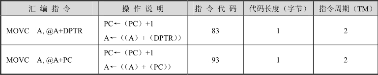 “MOVC A,@A+PC”与“MOVC A,@A+DPTR”两条指令的区别:前者访问ROM的范围是相对PC当前值以后的256字节地址空间,而后者范围可达整个程序存储器64K字节的地址空间。累加器A的内容是一个8位无符号数。