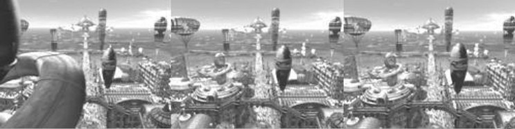 目前在国内外有许多动画剧采用了全三维的制作手法。虽然从制作经费上说,全三维制作非常昂贵,但能获得更逼真的场景,从而对剧情的发展与表现起到很好的作用,因此使用三维手法制作动画剧将有望成为动画界的主流。如图0-10所示为某动画片的一个连续镜头。