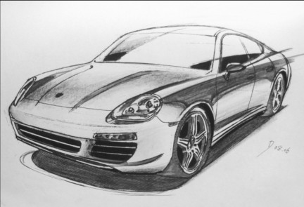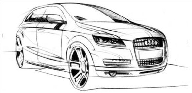 任何一个CG作品都要有突出鲜明的主题,这样才能吸引人,所以作品制作之前的构思非常重要,否则只靠出色的渲染效果是远远不够的,构思主要是确定你的作品所要表达的重点,在制作的时候有所侧重。如图0-15所示为制作汽车模型前根据脑海中的构思绘制的草图。