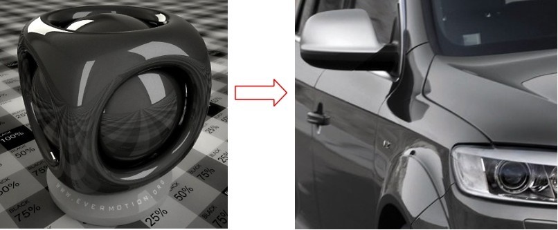 3ds Max提供了许多材质类型,可编辑各种复杂绚丽的不同材质,既有能够实现折射和反射的材质,也有能够表现凹凸不平表面的材质。只有制作者未曾知晓的材质效果,而没有程序无法做出的材质效果,其庞杂的各种功能令人眩目!如图0-19所示为按照产品实际的效果制作的车漆材质。