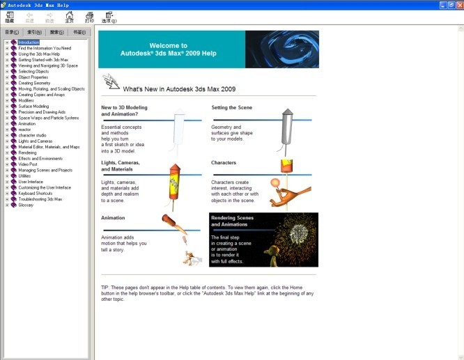 在菜单栏中选择“Help(帮助)”→“Autodesk 3ds Max Help(Autodesk 3ds Max帮助)”命令可以打开如图0-36所示的帮助文件,用户可以在其中查找Autodesk官方对软件的所有操作命令和各种工具的解答。并能够得到一些实用的操作技巧和提示。