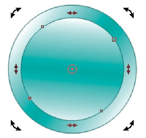 “交互式填充工具”按钮,打开交互式填充手柄,参照图2-7所示调整手柄的位置。