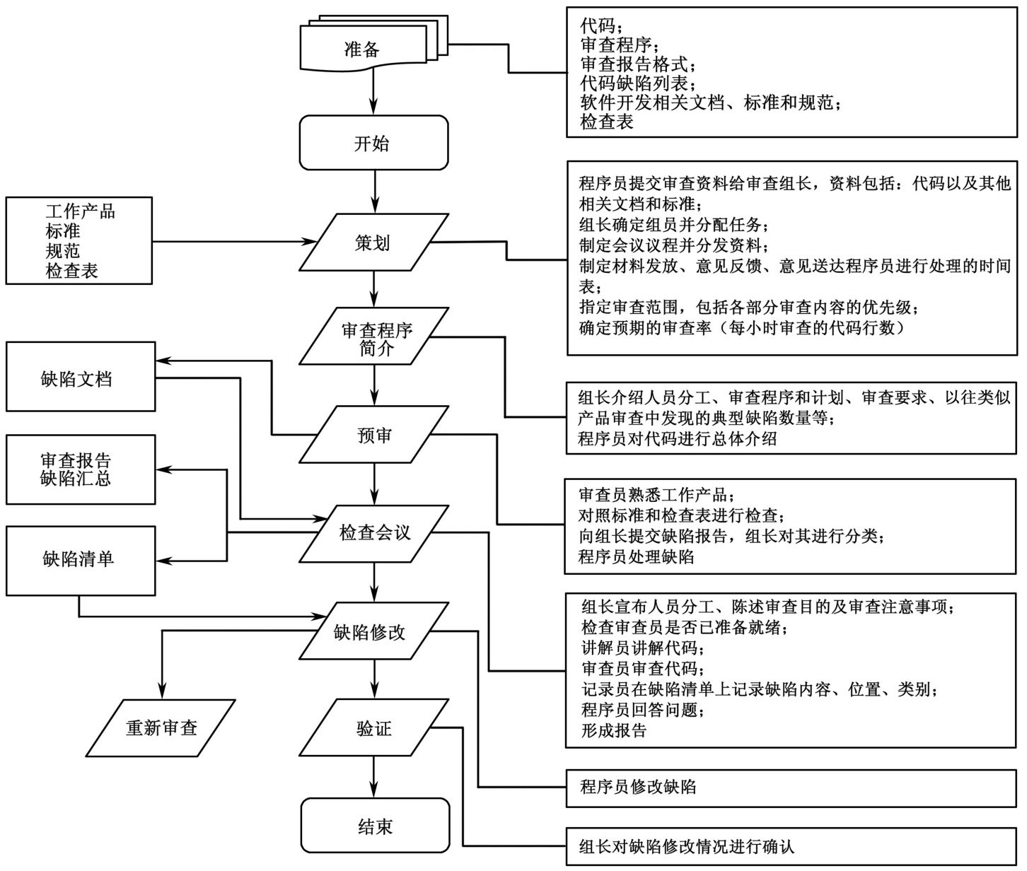 • 需要的支撑文档已准备完毕,包括审查程序、审查报告格式、代码缺陷单、审查单、相关的标准和规范等。