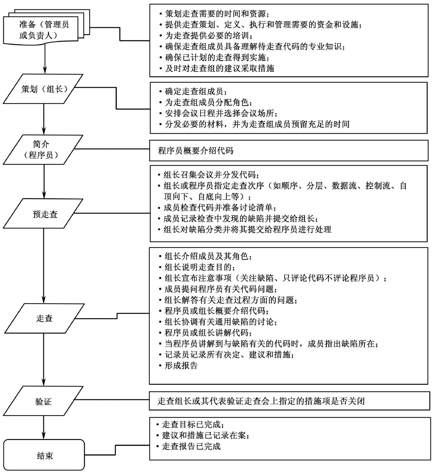 记录员:负责记录走查会议期间作出的决议或确定的整改措施。此外,记录员还应记录走查期间对发现的缺陷、风格方面的疑问、遗漏、矛盾、改进建议或备选方法等方面的意见。