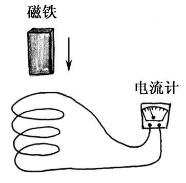 1825年,科拉顿做了一个实验,当时的情况是这样的:先制作一个大的空心线圈,把它的两端接到一个电流计上,将一块磁铁插入线圈中,观察电路中是否有电流产生,如图4.5所示。电流计是一个检测电路中有没有电流通过的装置,当有电流通过时,它里面的指针会发生偏转。