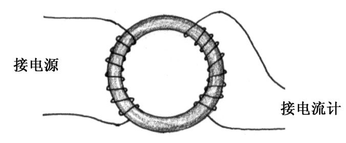 另一方面,在那个年代,人们的想法很朴素,他们觉得磁生电就是将一根导线静静地放在一块吸铁石上,然后在旁边看着它发出电来。为了做实验,法拉第的道具是用一个大铁圈,在两边分别绕了两个线圈,如图4.6所示。