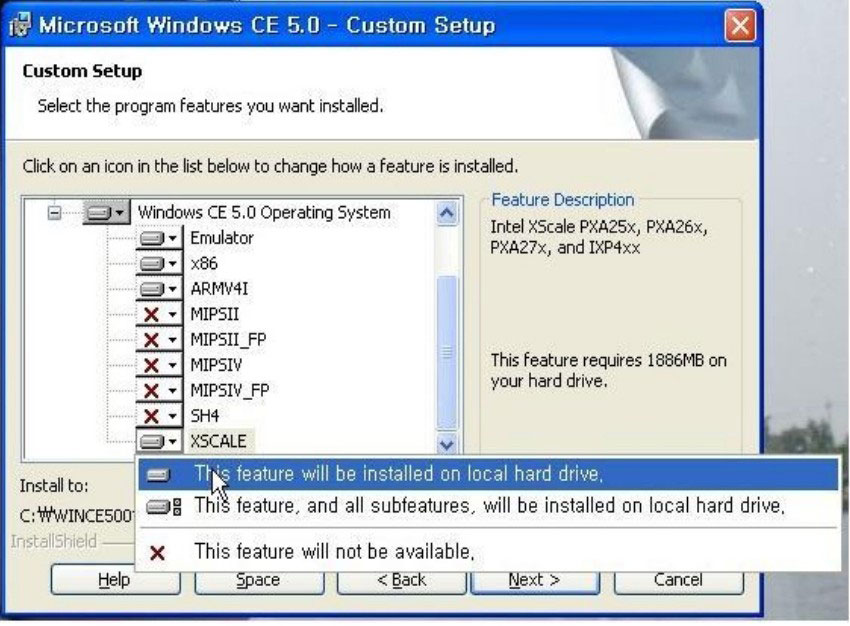(7)选择CPU类型,选择ARMV4I和XSCALE,如图2.8所示。