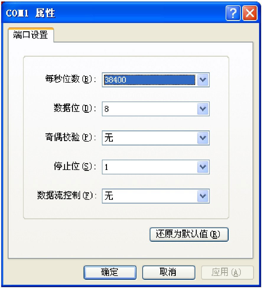 (4)参照图2.17配置COM1(串口1)的特性,然后单击“确定”按钮。