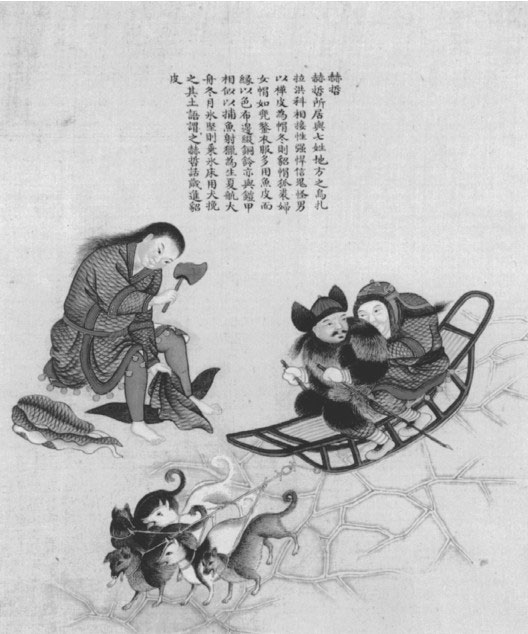 明朝末年,后金、清政权崛起于东北,经过努尔哈赤与皇太极的不断征战,黑龙江、乌苏里江流域各族先后归附,并向后金、清朝缴纳贡赋。索伦、萨哈尔察、虎尔哈、使鹿部、使犬部等,每年都要缴纳貂、狐、猞猁、海豹、水獭等毛皮,其中貂皮是最重要的进贡物品。后金及清政权对黑龙江、乌苏里江的居民有的编入八旗,平时生产,战时出战,或者以村屯或氏族为单位将他们编入户籍,分户管辖。顺治元年(1644年),清军入关夺取全国政权后,设盛京总管管辖整个东北地区,包括外兴安岭一带。顺治三年(1646年),改总管为昂邦章京。顺治十年(1653年),清政府把盛京昂邦章京所辖的松花江、黑龙江、乌苏里江流域,包括库页岛和尼布楚等地,设置为单独的行政区,在原设的宁古塔副都统之上,增设宁古塔昂邦章京,以加强对这一地区的管辖。