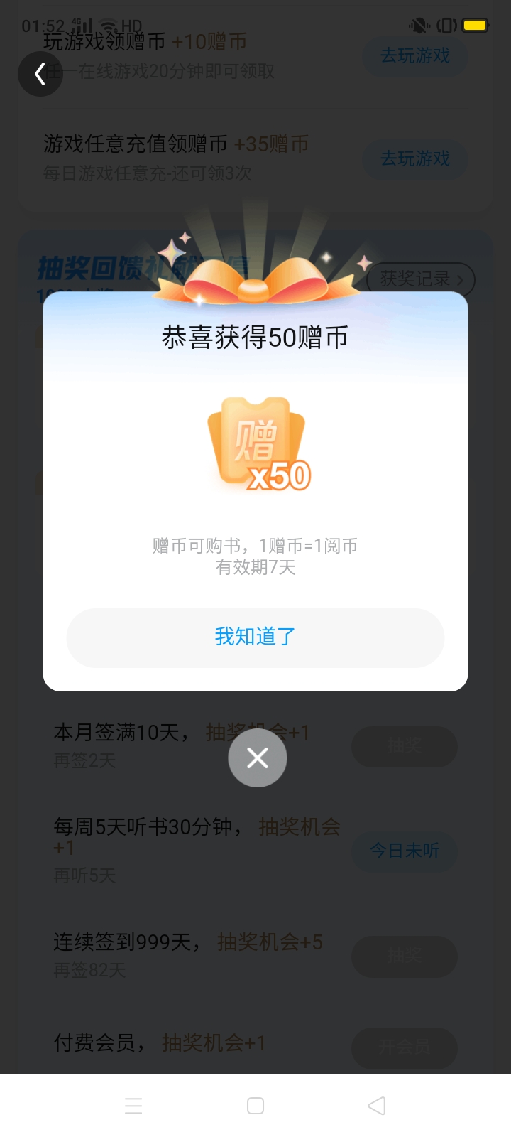 虽然问题没答对得不到卡牌,但是抽奖手气还好得到五十赠币!
