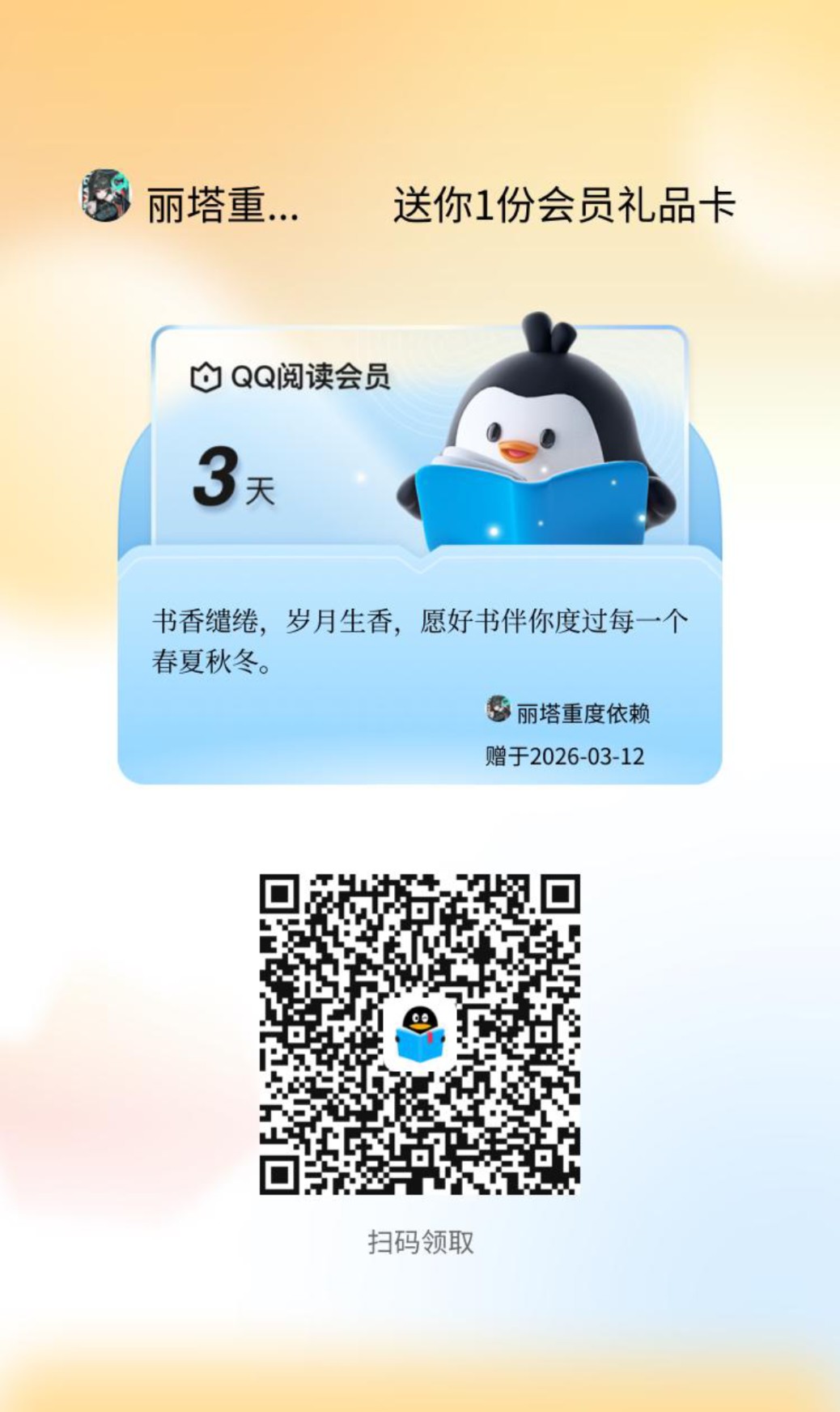 有没有人要3天会员的,领了说一声